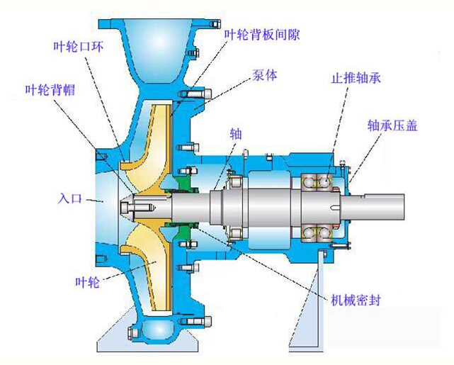 離心泵的工作原理:離心泵在工作時,依靠高速旋轉(zhuǎn)的葉輪,液體在慣性離心力作用下獲得了能量以提高了壓強。離心泵在工作前,泵體和進口管線必須罐滿液體介質(zhì),防止氣蝕現(xiàn)象發(fā)生。當(dāng)葉輪快速轉(zhuǎn)動時,葉片促使介質(zhì)很快旋轉(zhuǎn),旋轉(zhuǎn)著的介質(zhì)在離心力的作用下從葉輪中飛出,泵內(nèi)的水被拋出后,葉輪的中心部分形成真空區(qū)域。一面不斷地吸入液體,一面又不斷地給予吸入的液體一定的能量,將液體排出。離心泵便如此連續(xù)不斷地工作。
