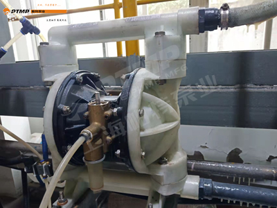 帕特氣動隔膜泵的現(xiàn)場應用,照片中展示了氣動隔膜泵的安裝方式以及管道的連接。