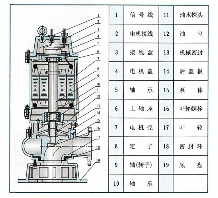 QW無(wú)堵塞潛水排污泵結(jié)構(gòu)圖